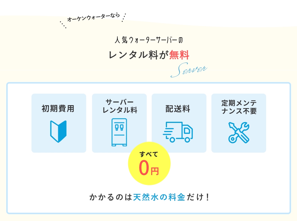 オーケンウォーターは、国内で採水された高品質な天然水を直接自宅に届けてくれる人気の宅配水サービスです。「コスト」「品質」「デザイン」のバランスに優れ、使い勝手も抜群。