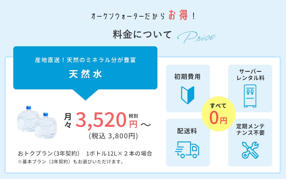 月額料金を抑えつつ、バリエーション豊かな天然水を選べるのは、他社にはないオーケンウォーターならではの強みです。